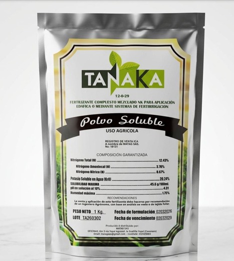 Fertilizante agrícola soluble para aplicación edáfica o fertirriego, fuente de Nitrógeno y Potasio, enriquecido con aminoácidos y una dosis hormonal que impulsa el desarrollo integral de tus plantas.
